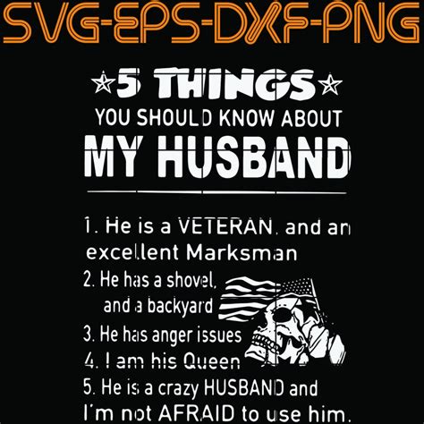 5 Things You SHould Know About My Husband 1 , he is a veteran, and an ... SVG PNG EPS DXf ... for Cricut
